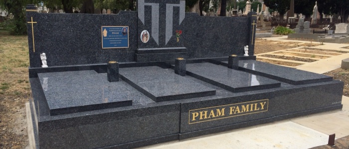 A beautiful quadruple all polished Blue Pearl Granite Memorial. Completed at Melbourne Cemetery – January 2015.